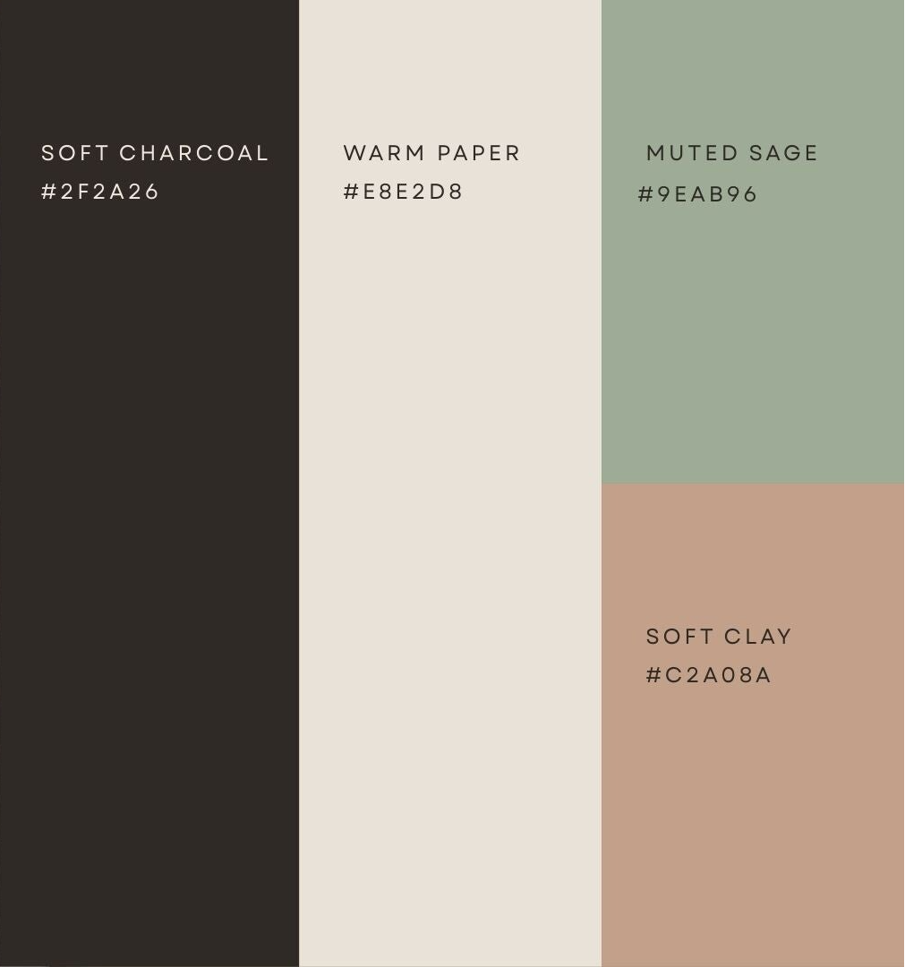 The palette balances warmth and stillness so the brand feels recognizable before it’s fully seen.